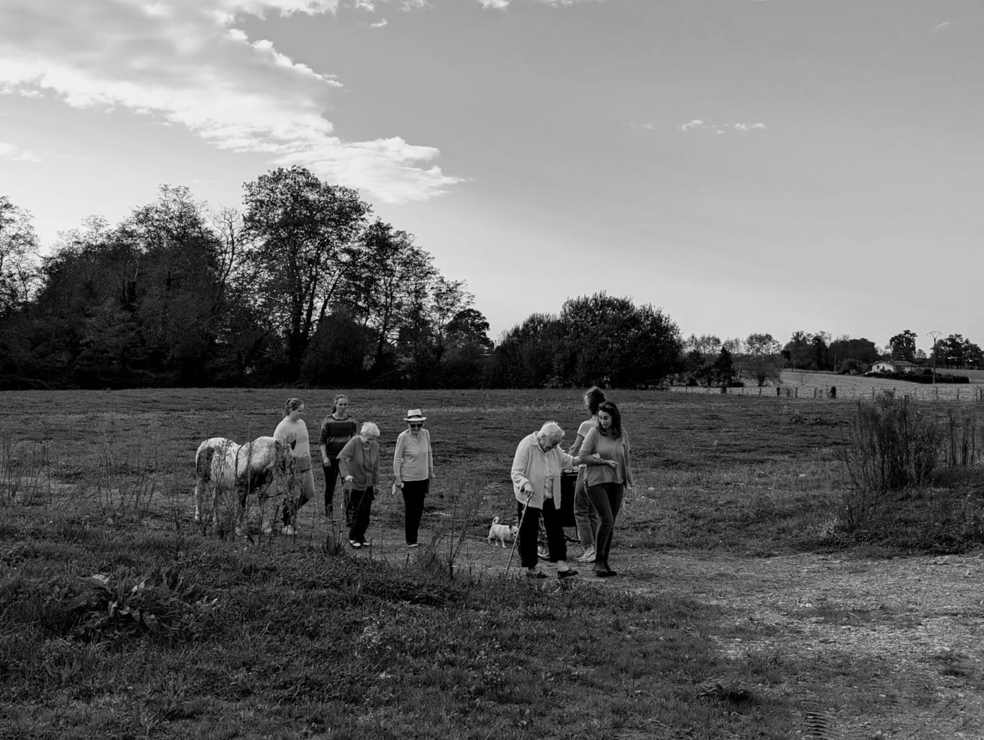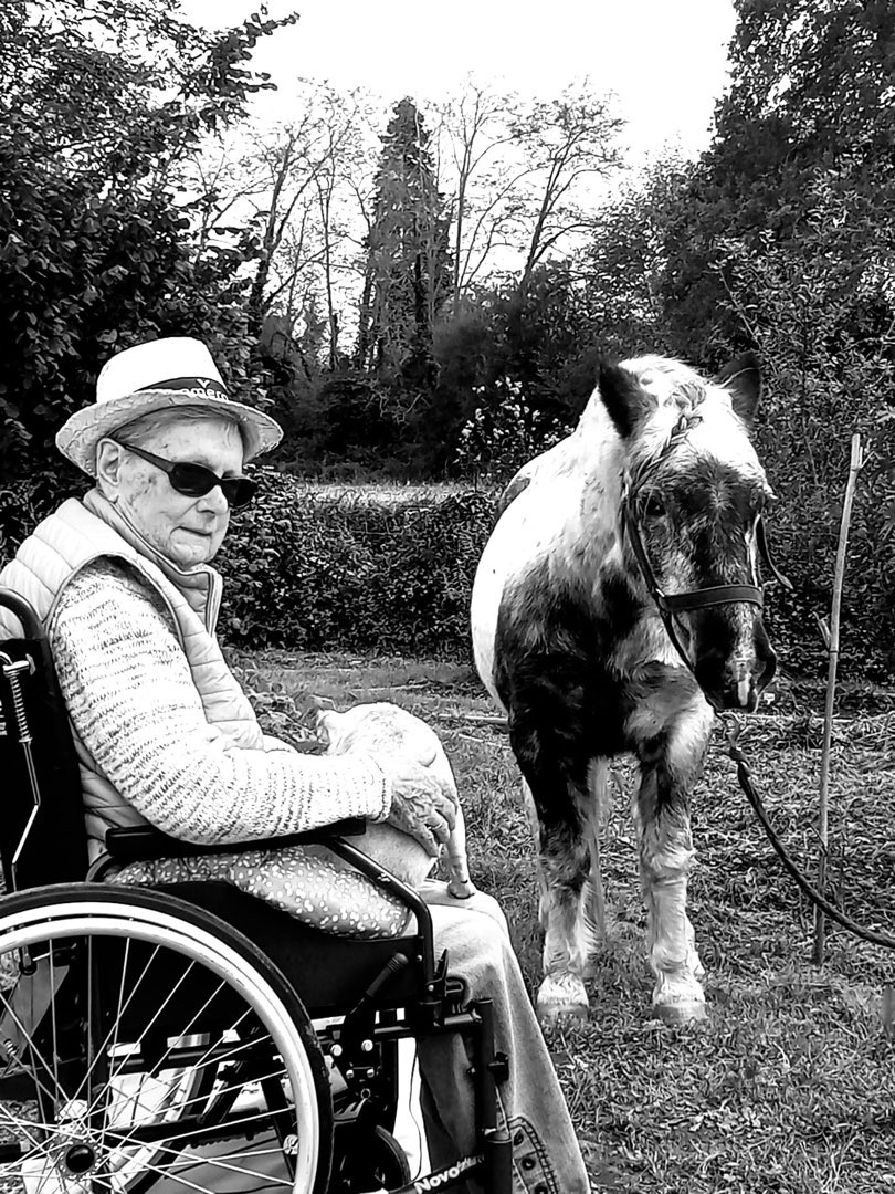 Accueillis chaleureusement par Sophie et son équipe, les résidents ont exploré un jardin soigneusement entretenu, où certains ont pu tester un parcours sensoriel. D’autres ont profité de moments de complicité en caressant chiens et poneys, renforçant ainsi le lien entre l’homme et l’animal.